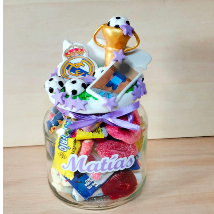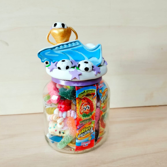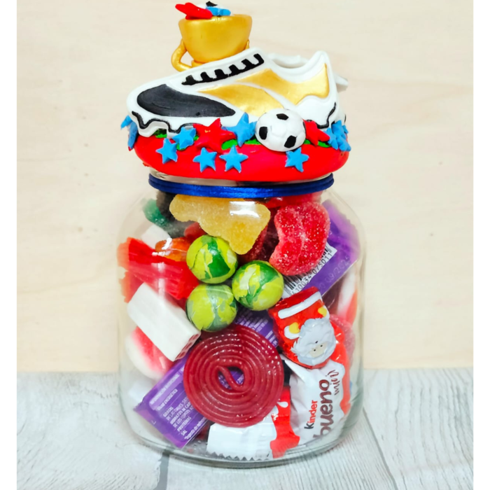 Este bote de chuches esta pensado, para todo aquel que sea amante del Futbol y las golosinas.