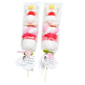 Tenemos las brochetas de chuches más bonitas y coloridas. Una combinación perfecta entre el rojo y el azul hacen que sean alegres y divertidas, ideales para decorar tu mesa dulce o como regalo.