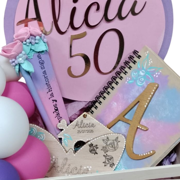 Cada caja incluye varios detalles personalizados a juego, combinados con una estética dulce y cuidada, perfecta para regalar en cumpleaños señalados 🎂✨