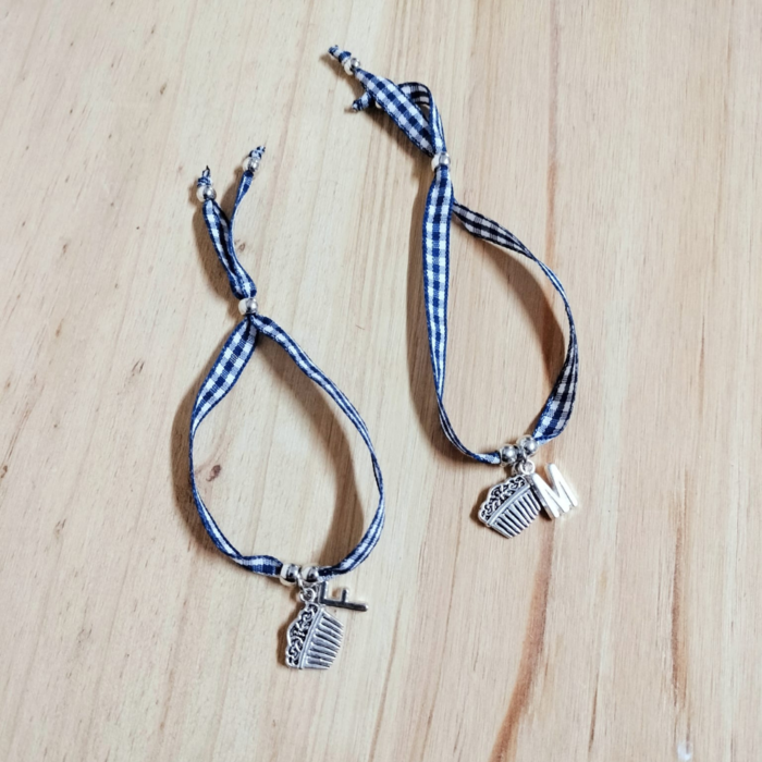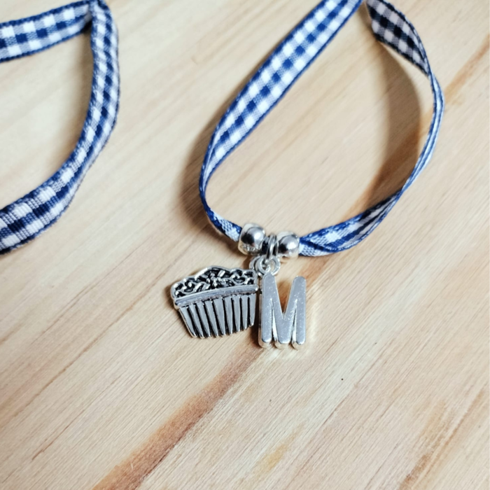 Creada con el estampado típico de los pañuelos falleros, decorada con una peineta. Hecha con un nudo corredizo para que sea perfecta para todas las muñecas. Personalizada con la inicial lo que la convierte en un detalle único.