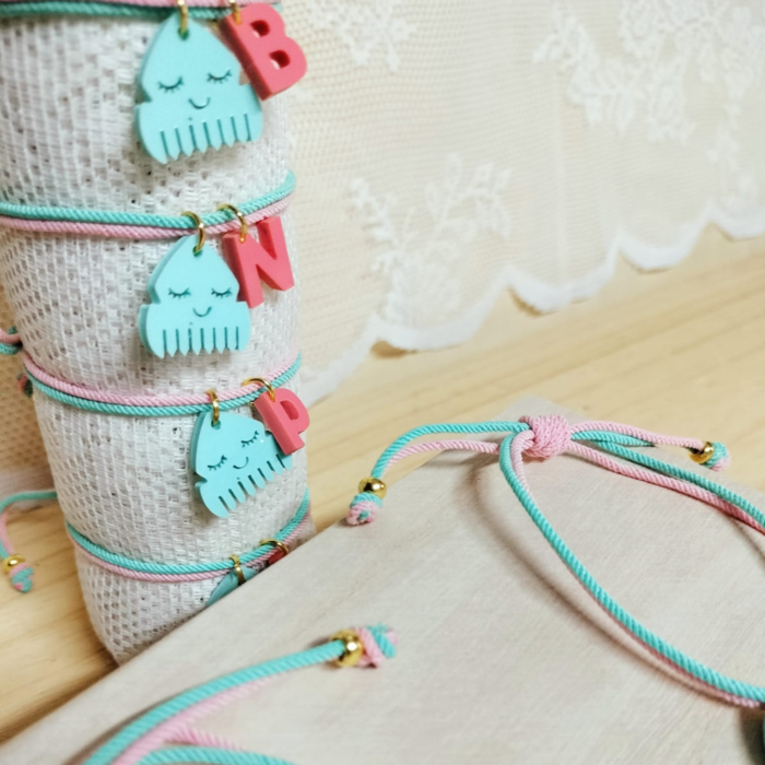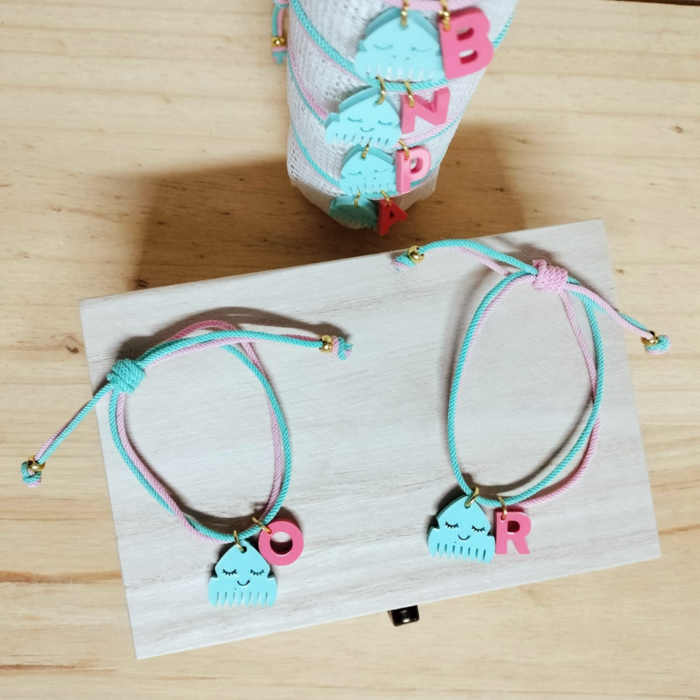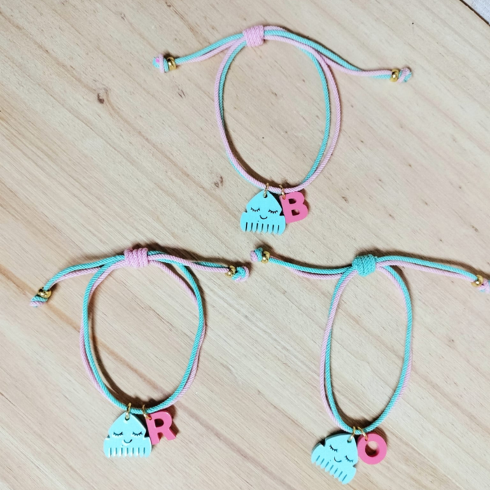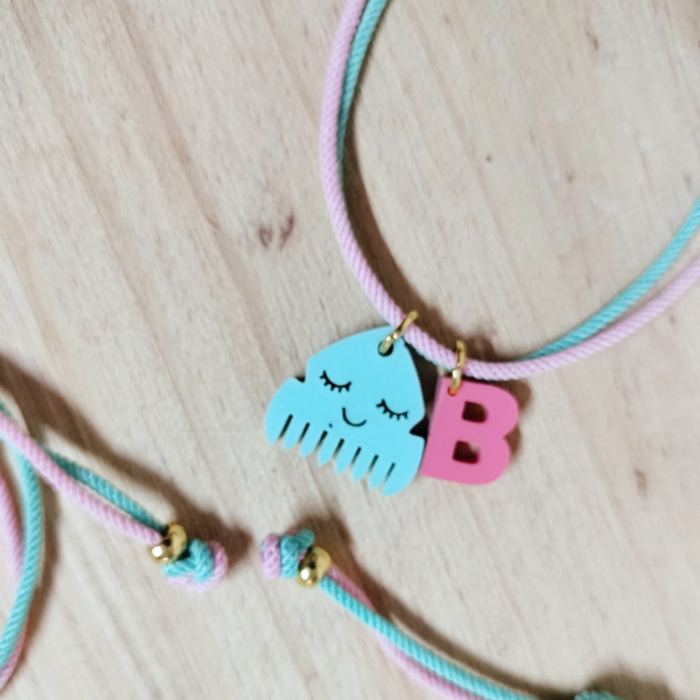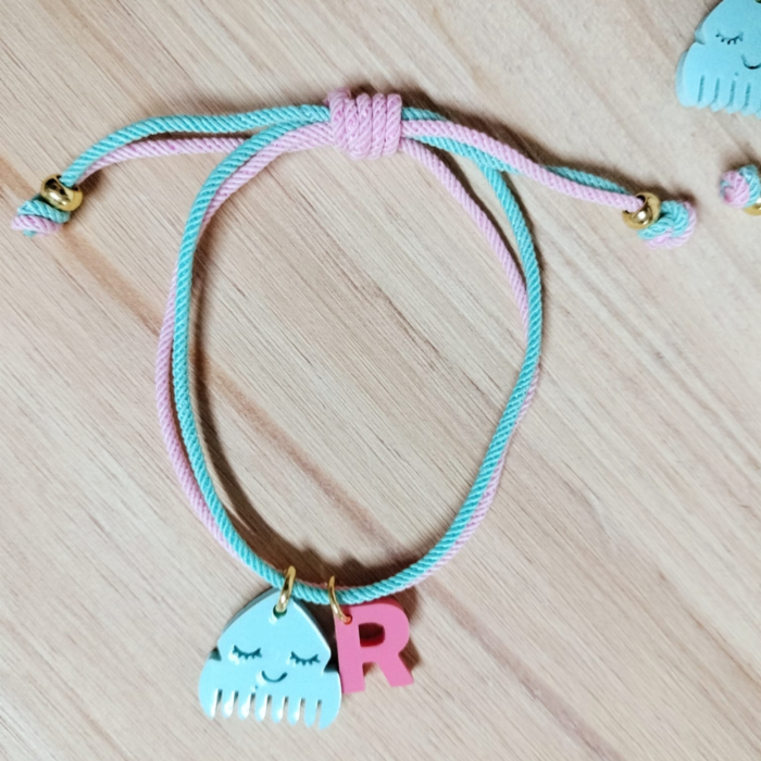 Creada en colores suaves, decorada con una adorable peineta. Hecha con un nudo corredizo para que sea perfecta para todas las muñecas. Personalizada con la inicial lo que la convierte en un detalle único.