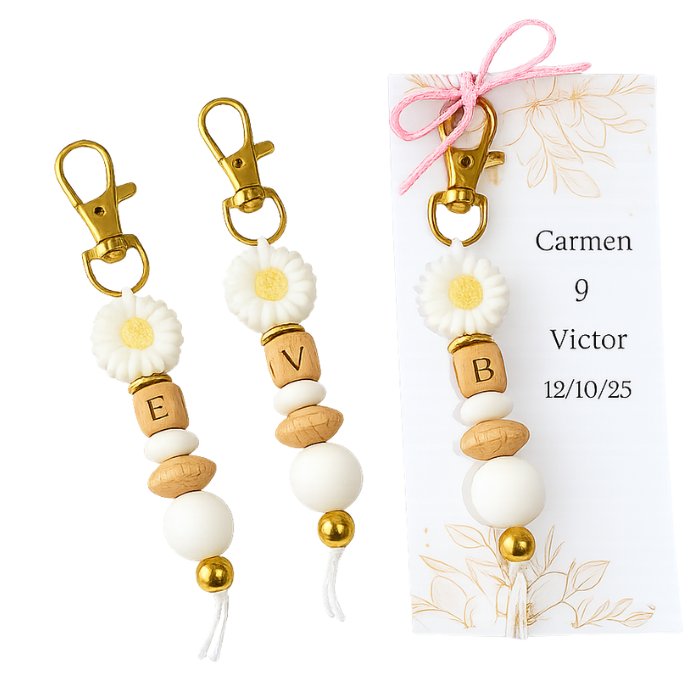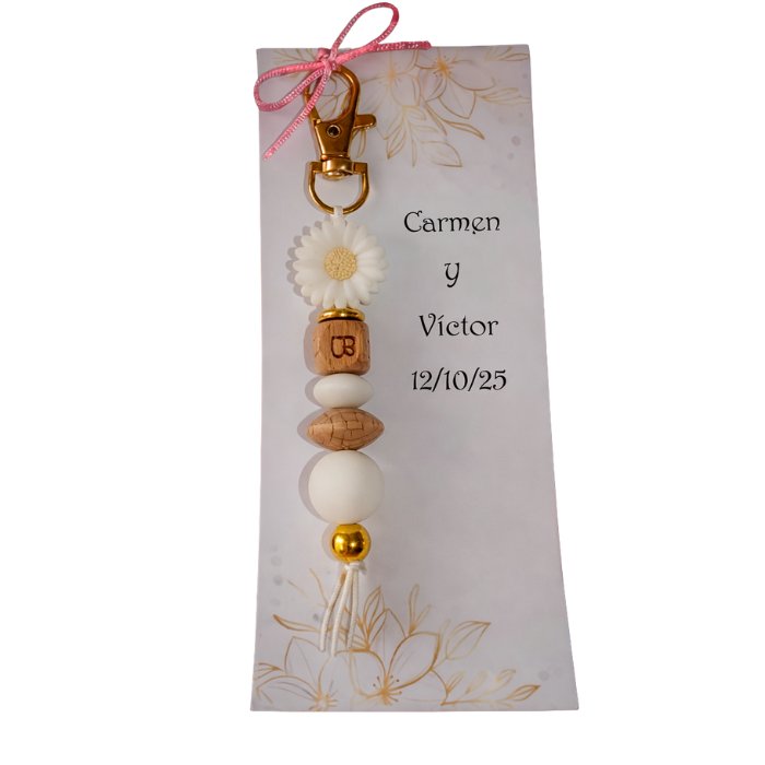 Este llavero personalizado con margarita es perfecto como recuerdo para bodas, comuniones, bautizos o cualquier celebración especial 💛