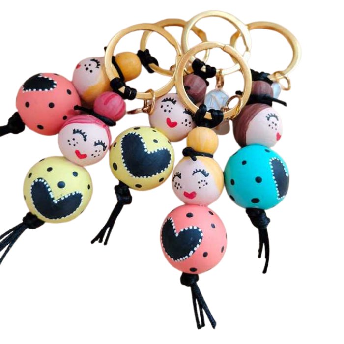 El Llavero Coquetas está realizado de forma artesanal con piezas de madera pintadas a mano, creando un diseño divertido y colorido que lo convierte en un regalo único y muy especial.