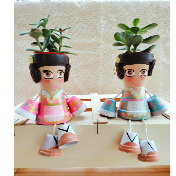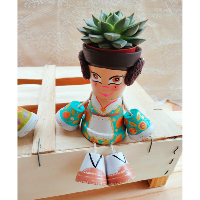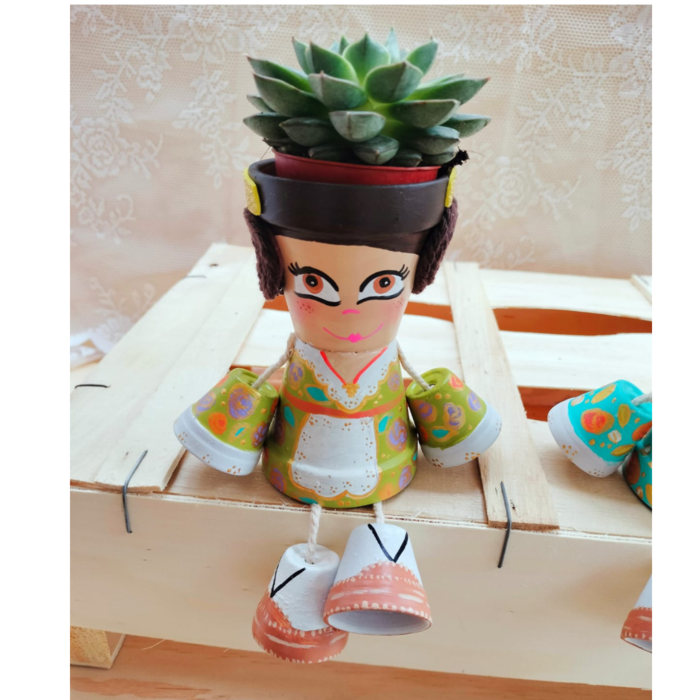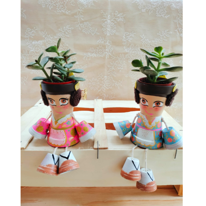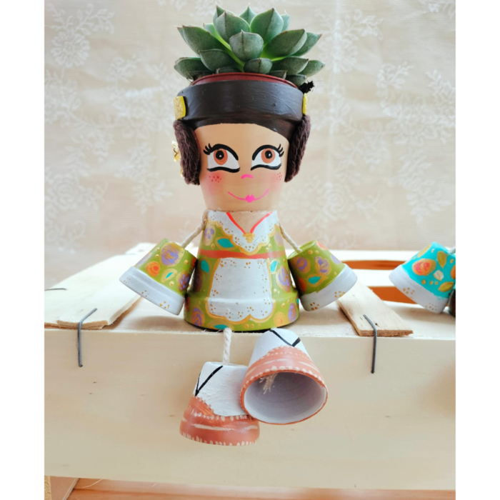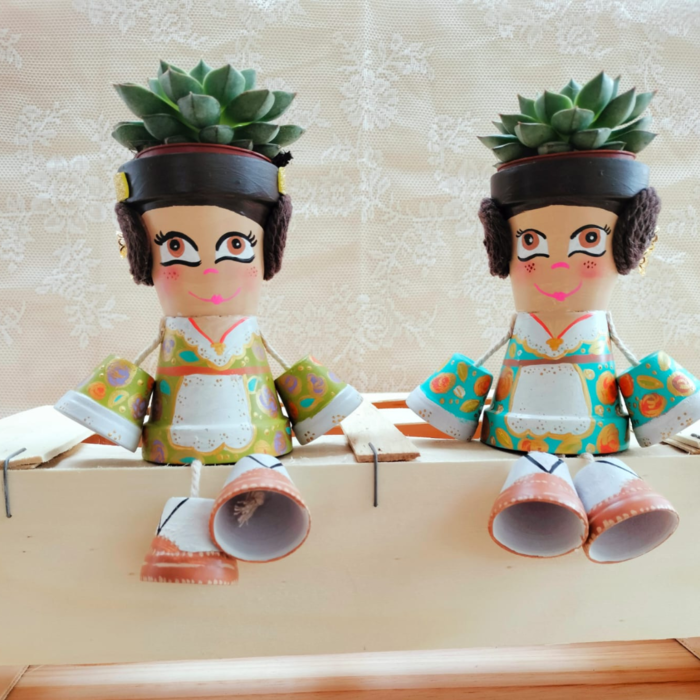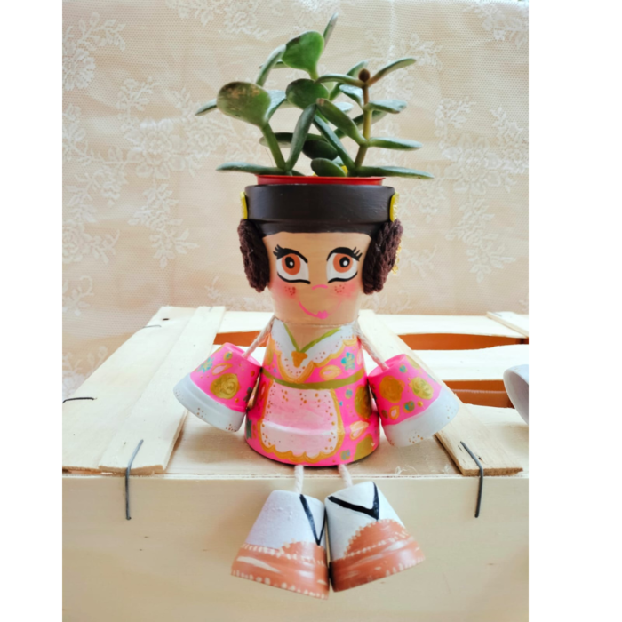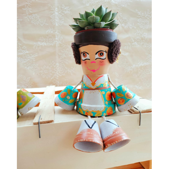 Eres fallera y te encantan las plantas, este regalo es para ti. Un macetero en forma de fallera. Con todos sus detalles. Hecha a partir de macetas de barro.