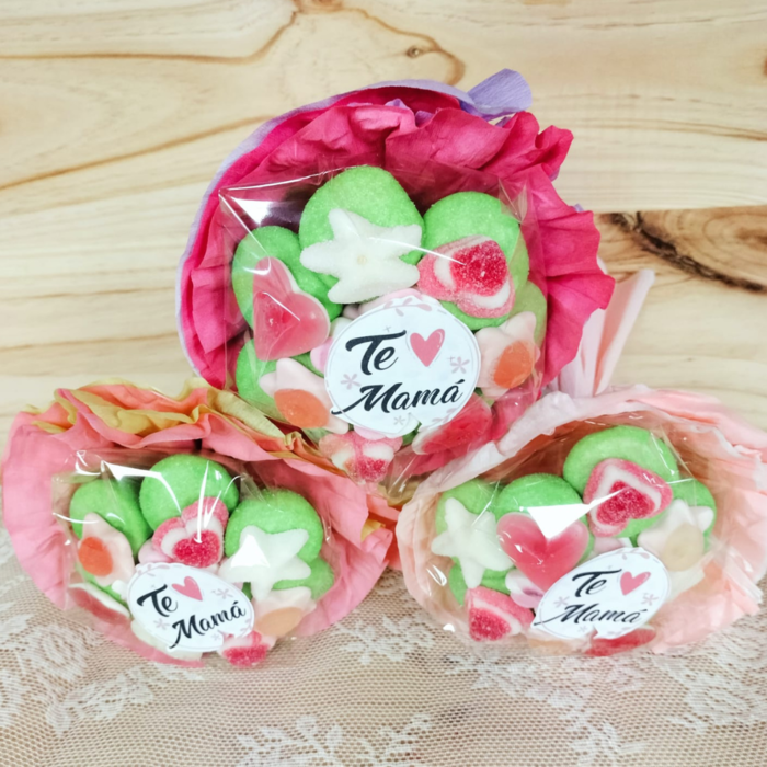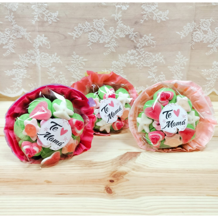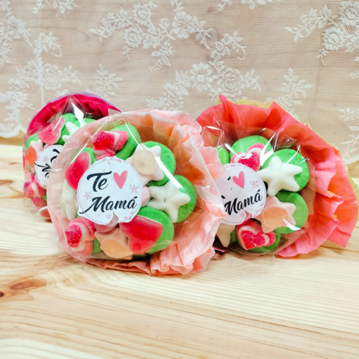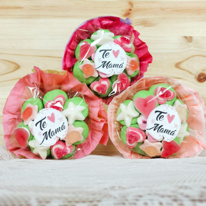 Si a tu mami le encantan las chuches y los ramos de flores, este regalo es ideal para ella.