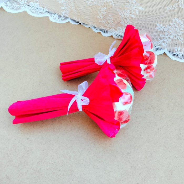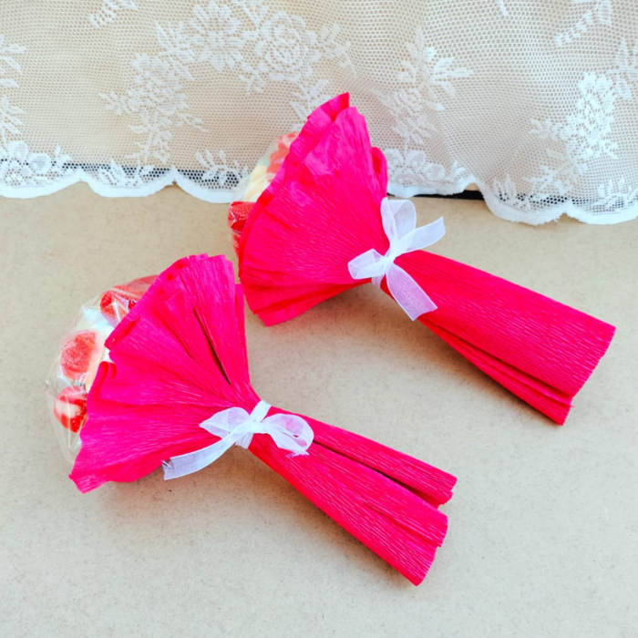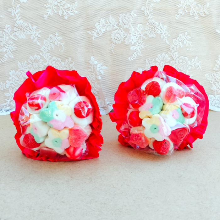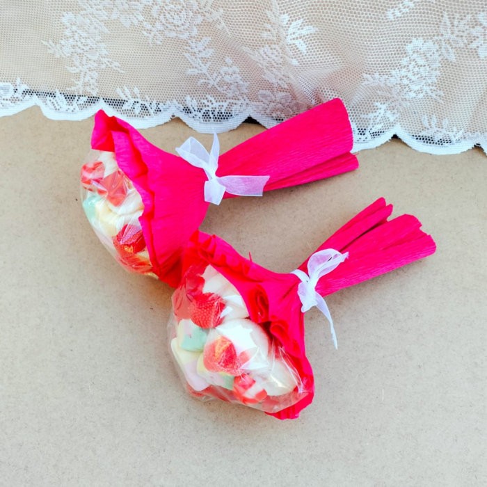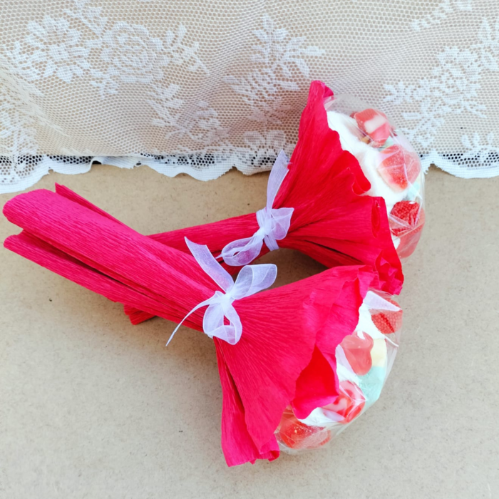 Ramos de golosinas, bonitos coloridos e ideales como regalo para San Valentín.
