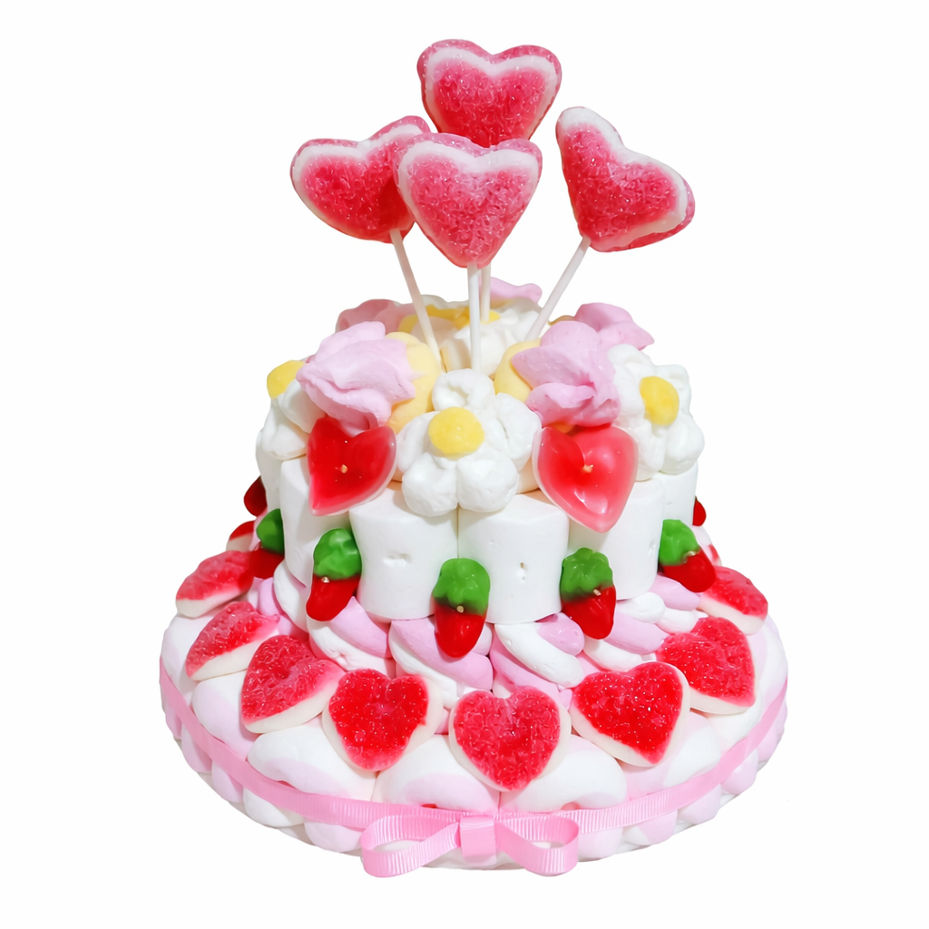 Una tarta de chuches dulce, romántica y muy vistosa 💕